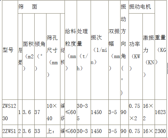 ZWS型振网筛适用于对松散的复合肥料及其它松散的细物料进行分级。 ZWS型振网筛是吸取美国先进技术自行设计制造的,以山西振动电机作为振动源,牵引筛网及筛框振动,实现物料分级。ZWS振网筛由给料器、筛箱筛面机体料斗和振网装置组成。材料由给料器均匀给到筛面,分成筛上产品与筛下产品(单层筛)。本系列振网筛以振动电机为振动源,牵引筛网上下振动,筛机振幅可调,以适应不同物料的分级。筛网的振动,一方面可防止筛网堵塞,同时使物料抛起向前弹跳实现分级,因而振网筛的筛分效率高。